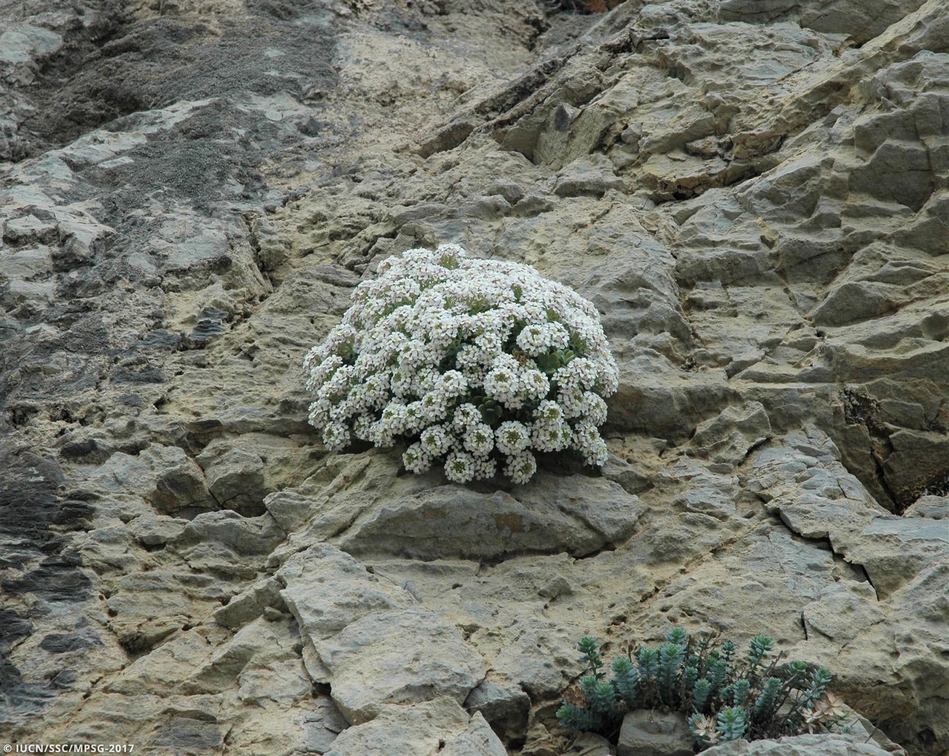 In situ: The priority should be to protect the species from grazing. The areas where it grows should be fenced and managed to keep grazing animals out. Both the large NE-facing cliffs of Mt. Kochilas and the N-facing cliffs of the islet of Skiropoula should be designated as nature reserves. Moreover, stone quarrying and plant collection should be prohibited.