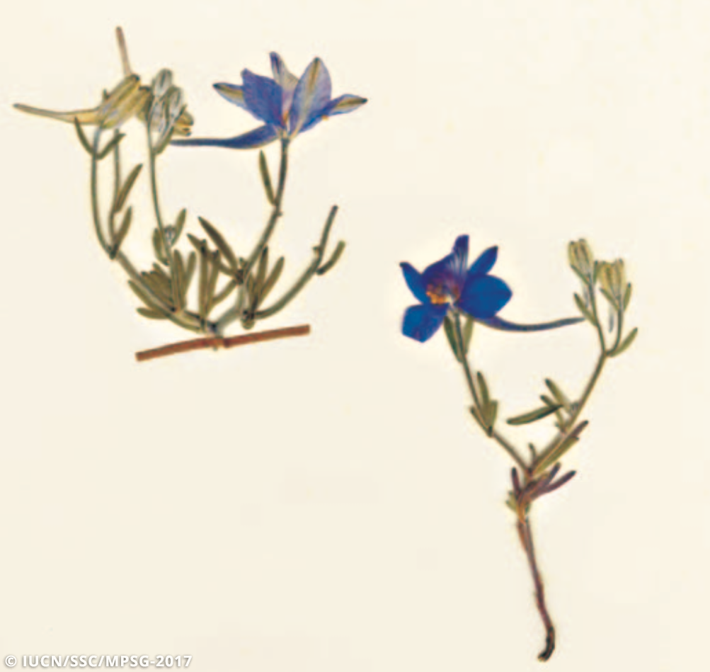 Consolida samia is a narrow endemic whose distribution range was thought to be restricted to the Island of Samos, where it grows on the steep limestone scree of Mt. Kerkis at an altitude of 800 m a.s.l. (habitat 6.1: Screes). In 2011, a second population was found in a very limited area of Soma Kocasivri hill in the Balikesir border of Manisa (western Anatolia, Turkey) at an altitude of 900 m a.s.l. This species appears to be restricted to a very particular habitat. It grows only on loose pebbly gravel-like screes, with the largest pebbles measuring about 2 cm in diameter and has never been found in any adjacent rocky areas or neighbouring fields with larger stone outcrops. The scree where it grows has no dense vegetation cover, yet despite growing in the open, this plant is easy to overlook because of its very small size.