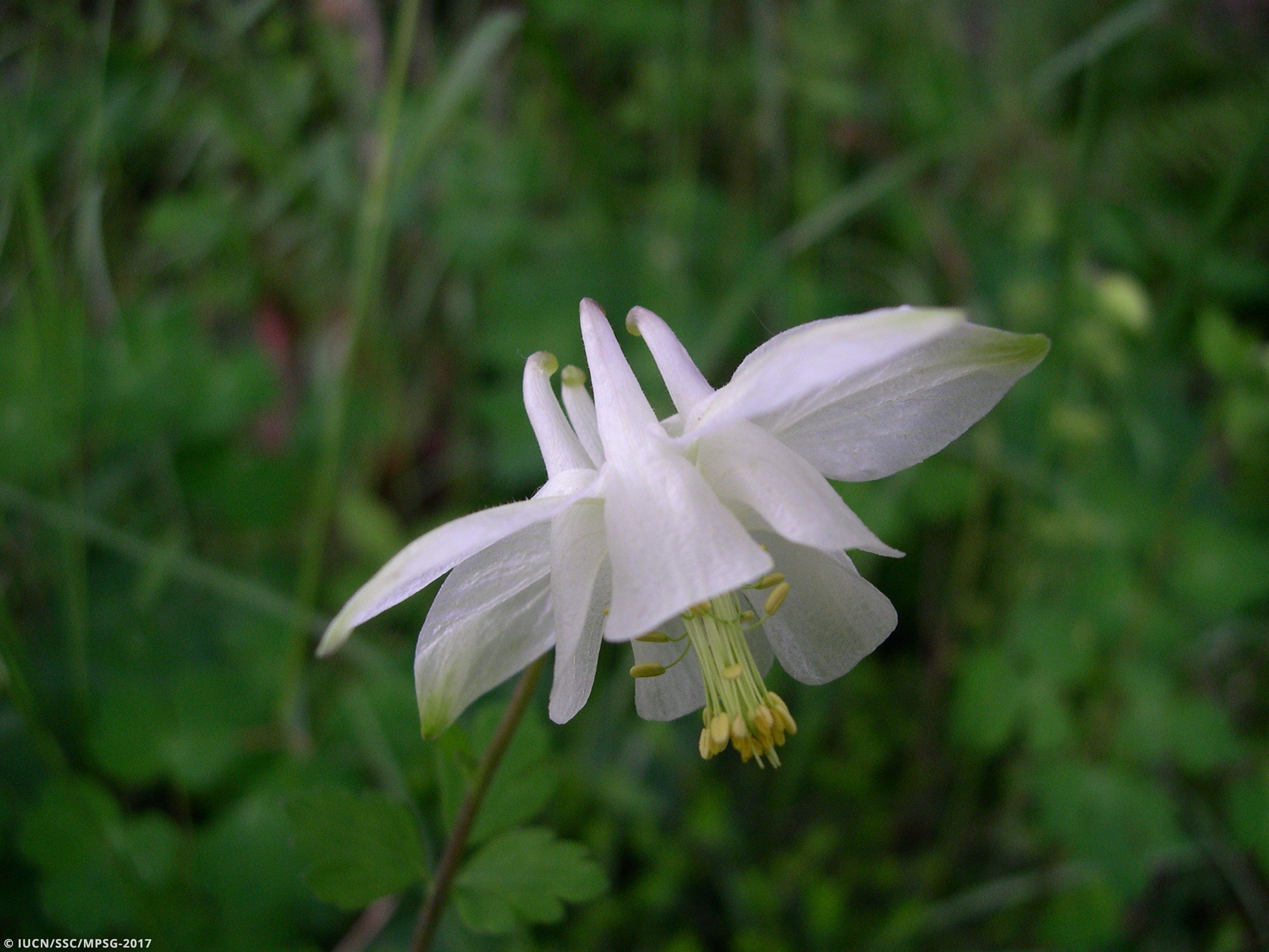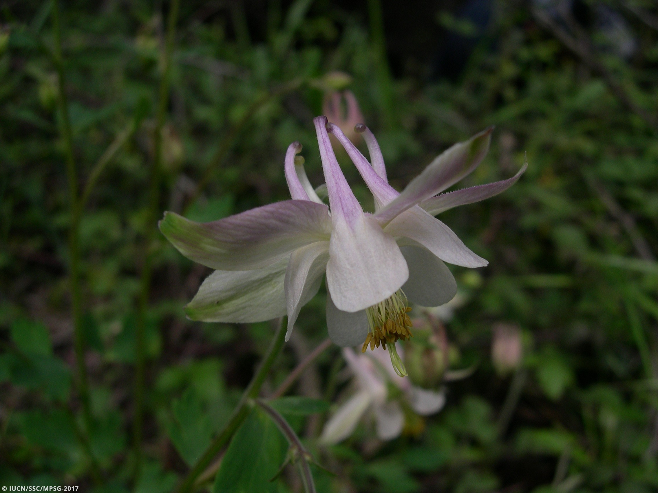 A. barbaricina belongs to the A. vulgaris complex, from which it differs in the usually white to white-pinkish flowers, the different orientation of the flower blade compared to the spur, the funnel-shaped structure and height of the lightly hooked spur, and the anthers which are yellow at maturity.