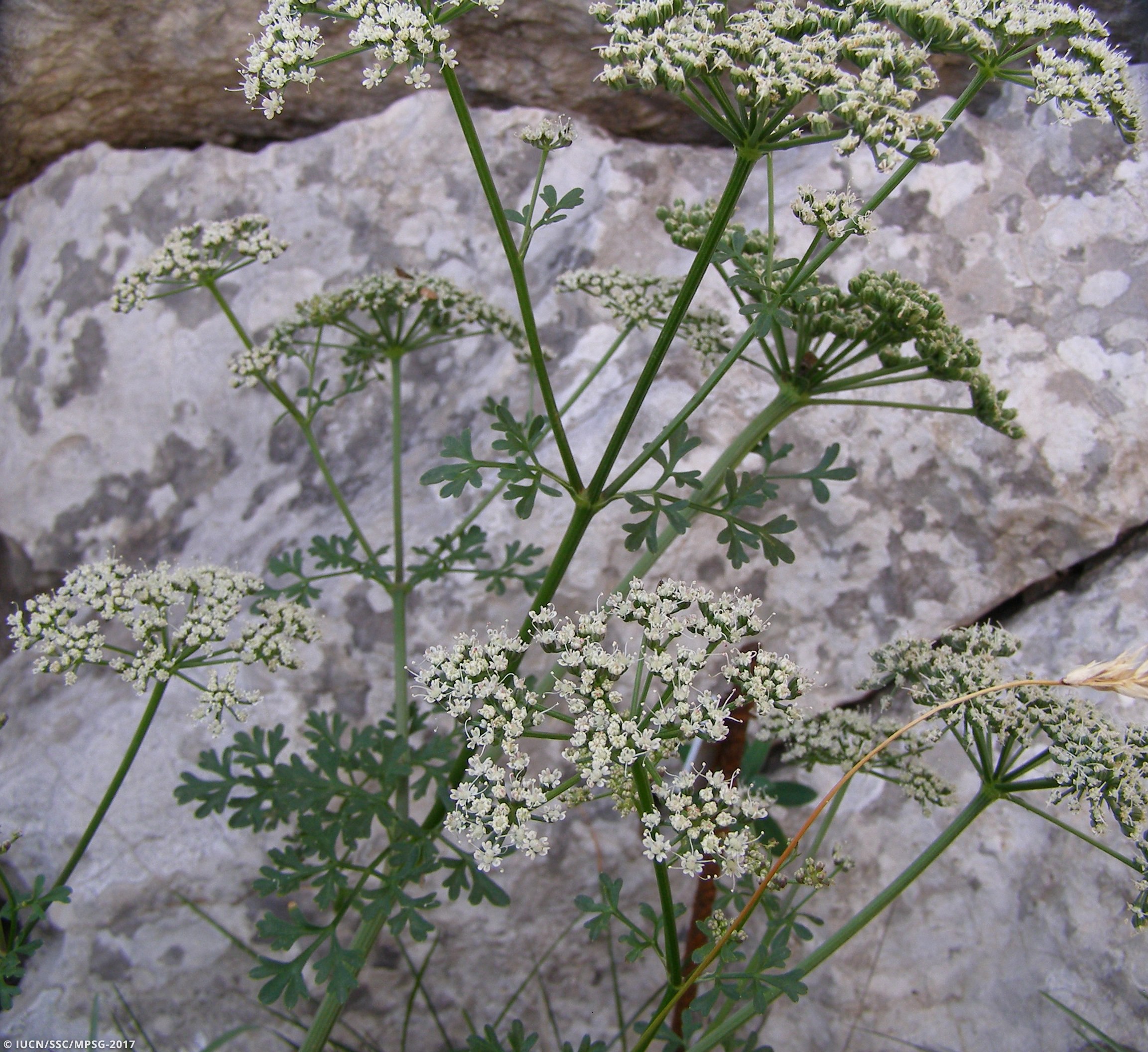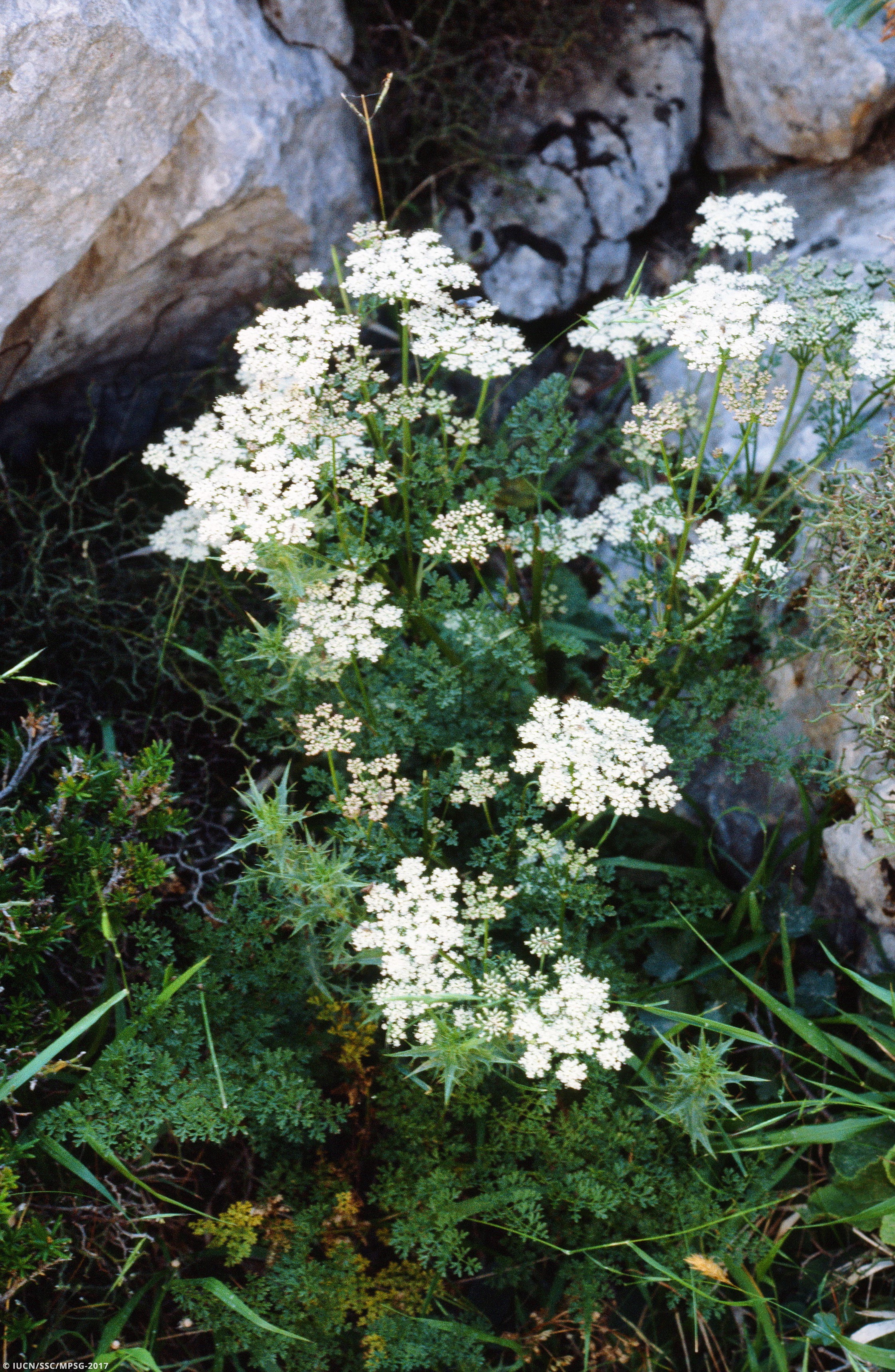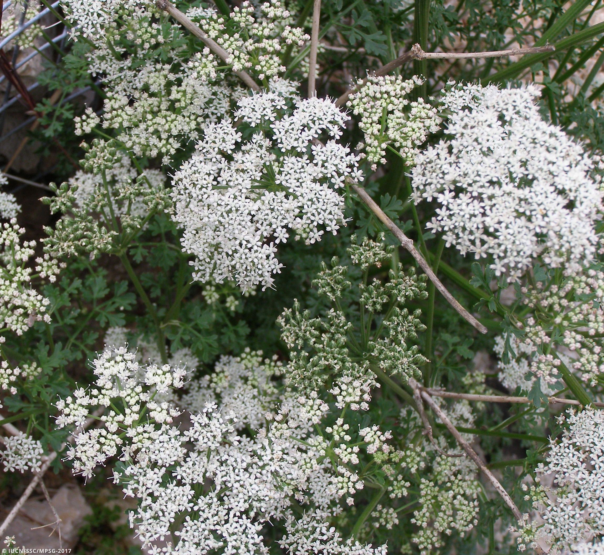 As there are no more suitable places to grow the plant except where population reinforcements have already been made, the main threat is low habitat availability (threat 12.1: Other threats), the impact of extreme dry years (threat 11.2: Drought). Grazing was the most important threat before the population was protected by metal fences, and still represents a potential threat, also because the number of wild goats has recently increased and the state of the protection fences is not regularly monitored (threat 8.1.2: Invasive non-native/alien species - Named species). Additionally, field observations pointed out a very low reproductive performance, with low number of umbels and fruits, low numbers of viable seeds and low germination rates near mother plants (threat 12.1: Other threats).
