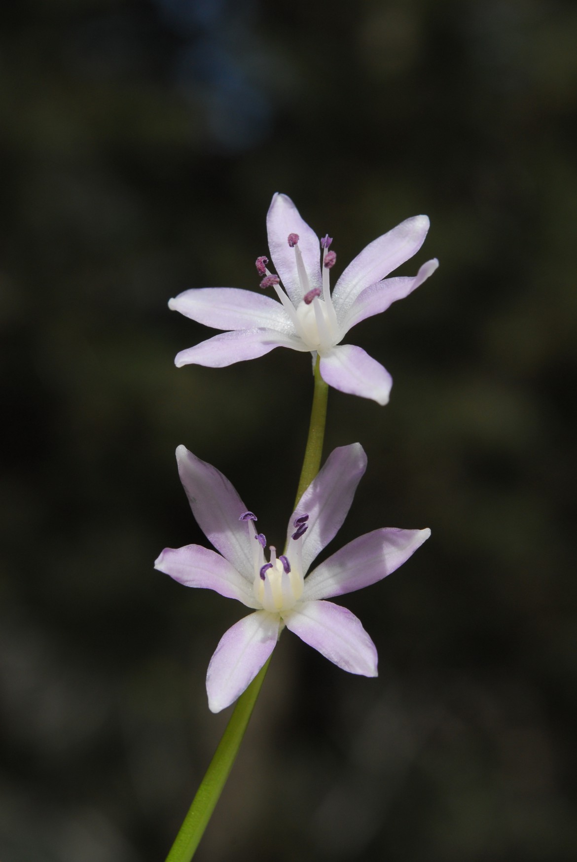 Scilla morrisii is a bulbous perennial herb, up to 35 cm high. It has three to six thick, linear leaves which emerge from a subterranean bulb and curve around the flowering stalk. The leaves are up to 70 cm long and 0.5-1.5 cm wide. Some variability exists with regard to flower colour and possibly timing of leaf expansion. Each of its flowering stems bear one to five flowers, gathered in loose bunches. Flowers are small, star-shaped and lilac or blue, tinged with milky-white. The flowering season lasts from March to April.